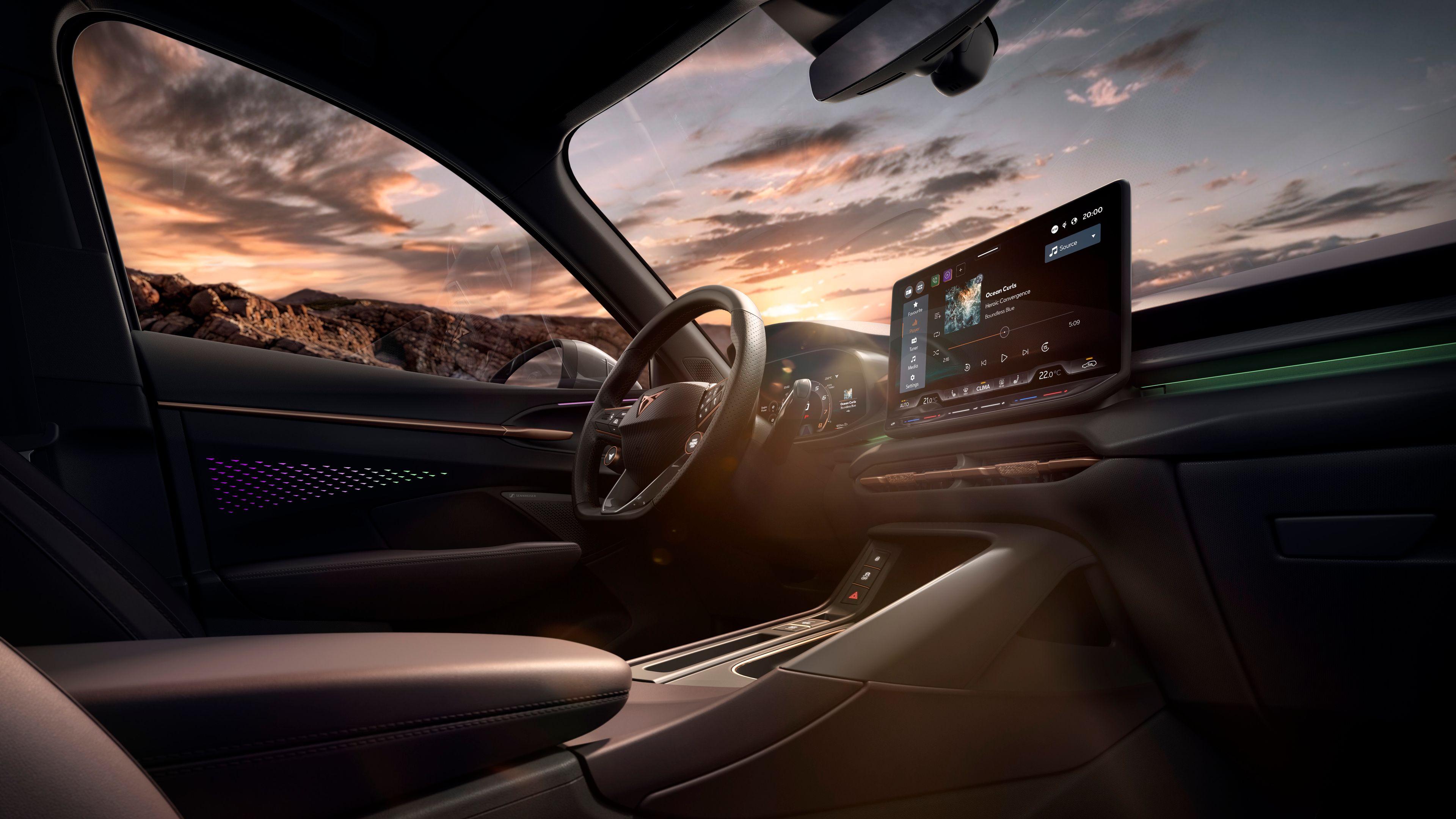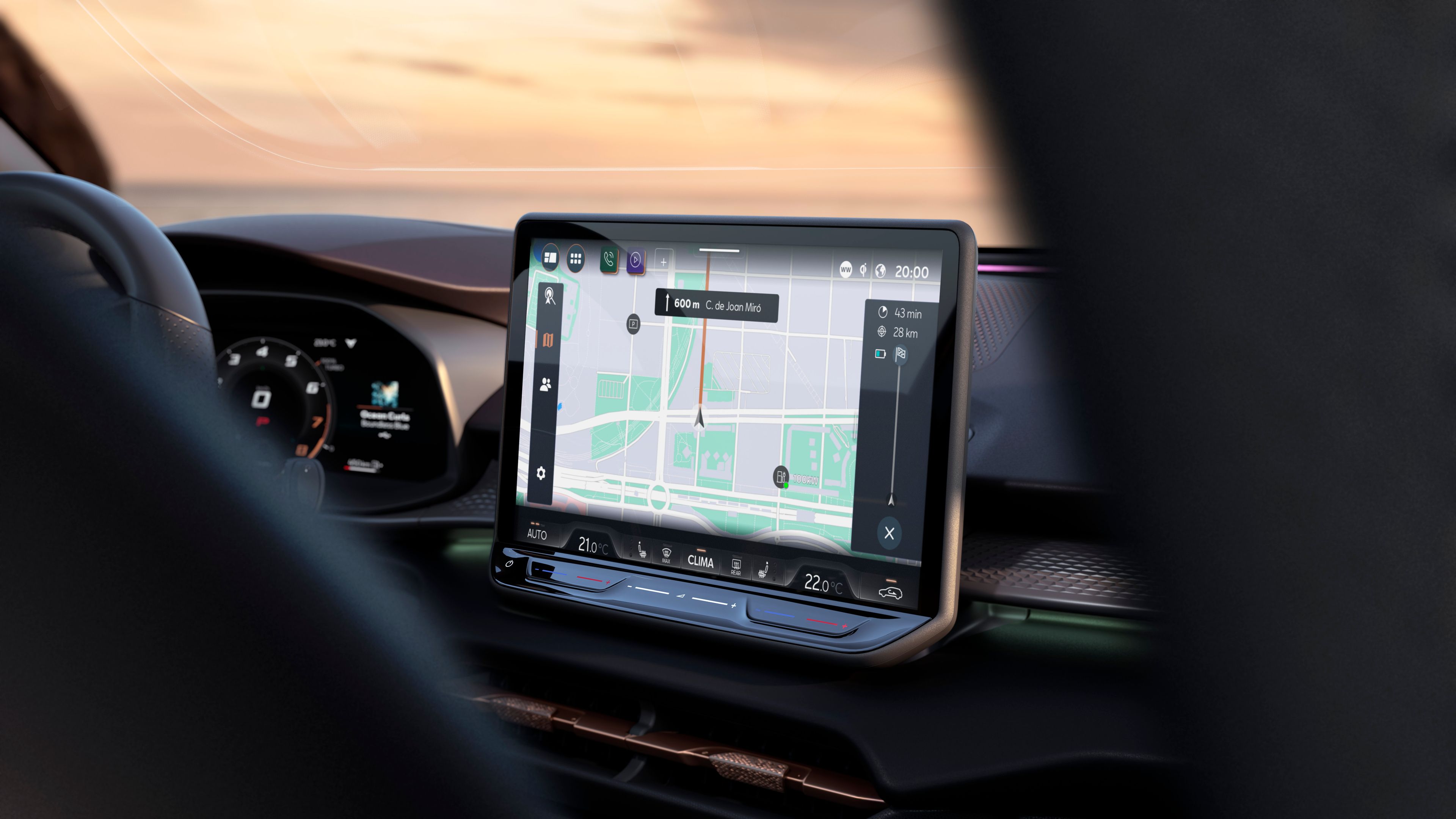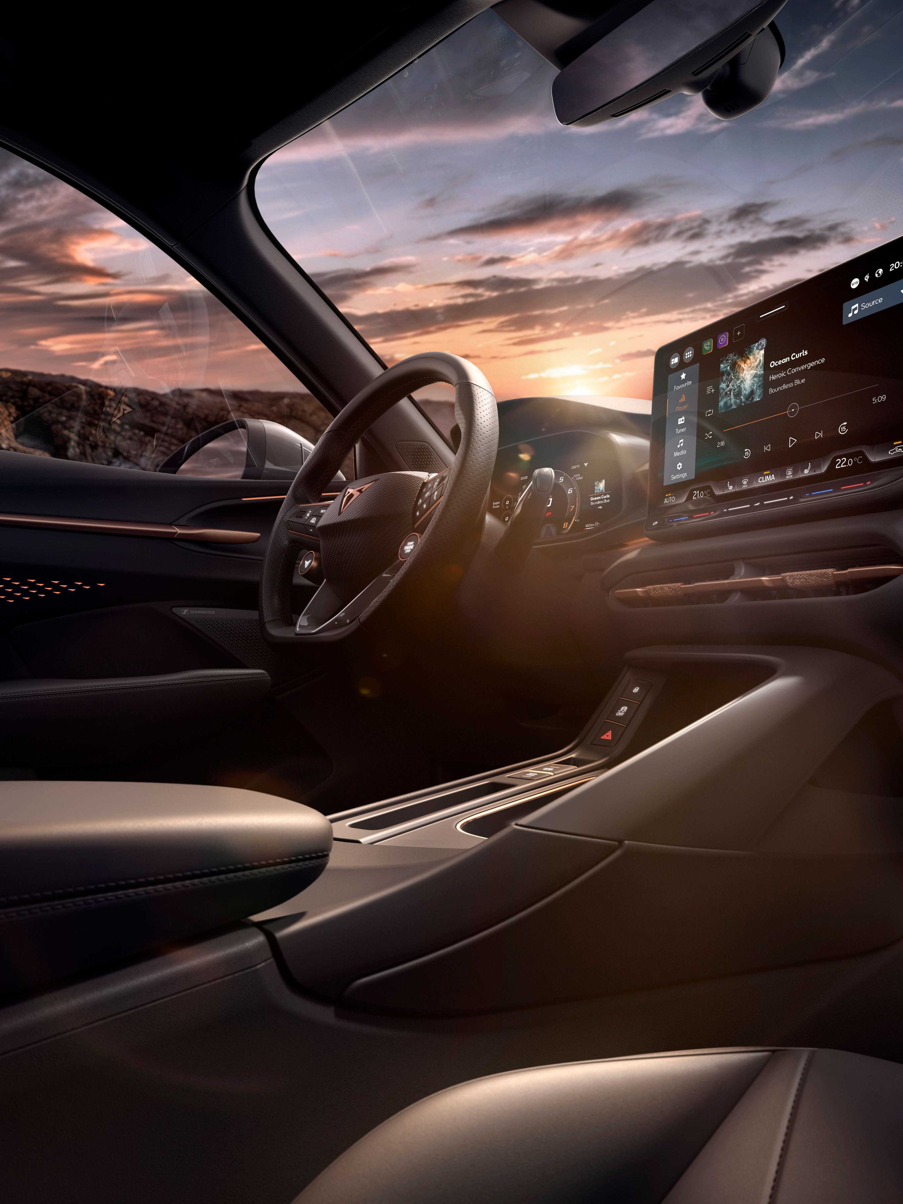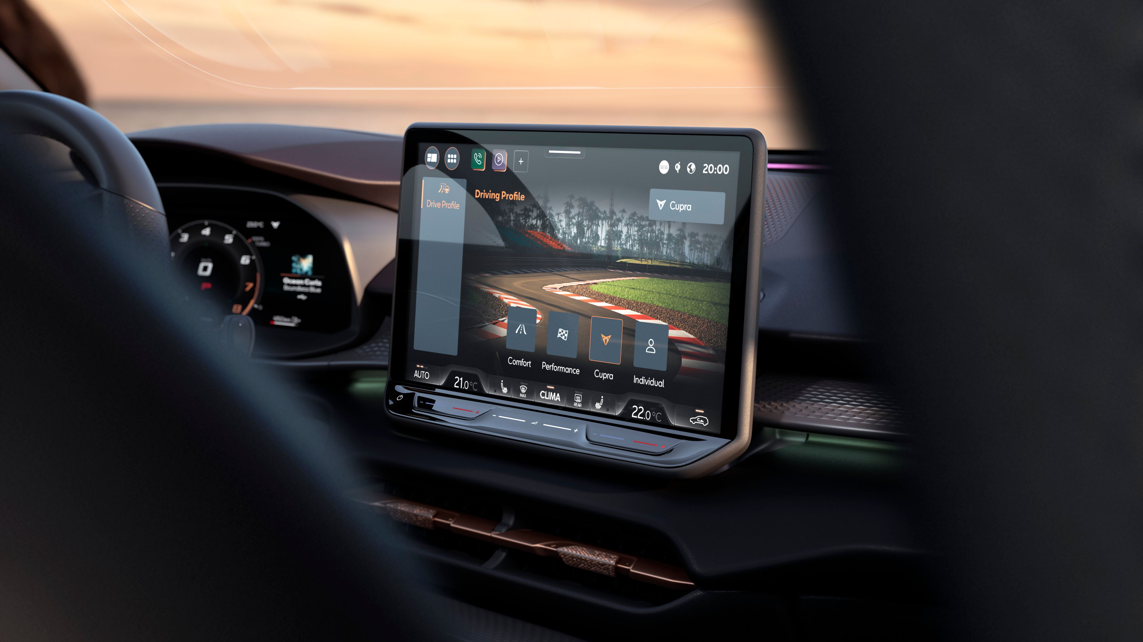 Tapasztalja meg az akadálytalan konnektivitást a CUPRA CONNECT segítségével a 12,9” infotainment rendszeren keresztül. Élvezze többek között az online térképek és a szórakoztatás funkcióit!